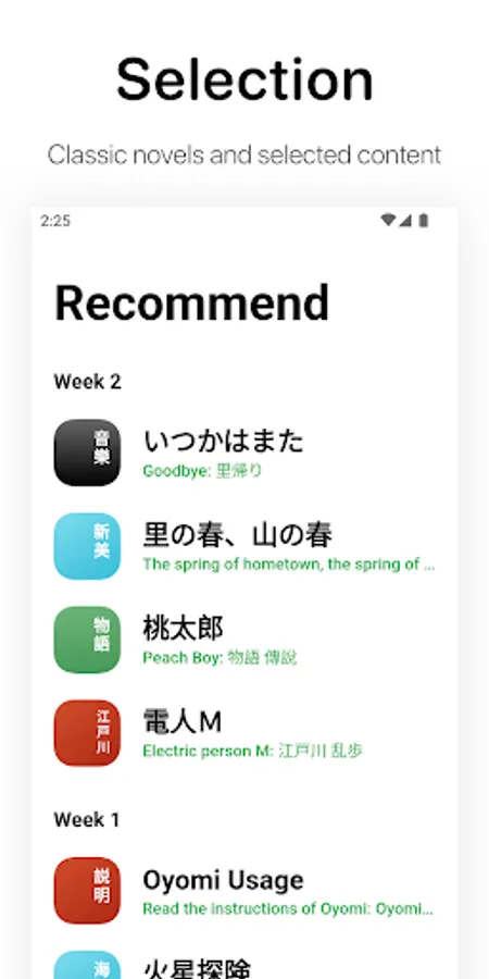 Content recommendation: classic novels, music appreciation, occasional updates of selected content.