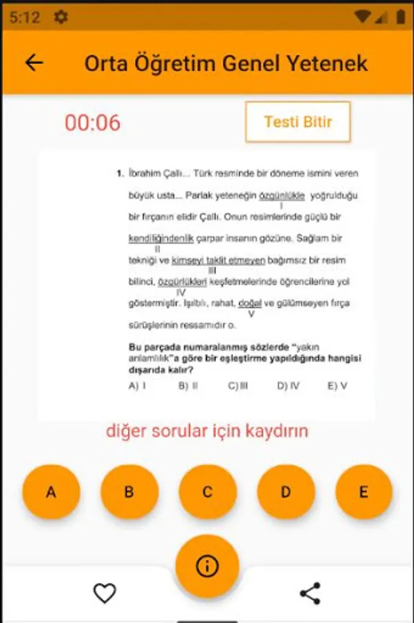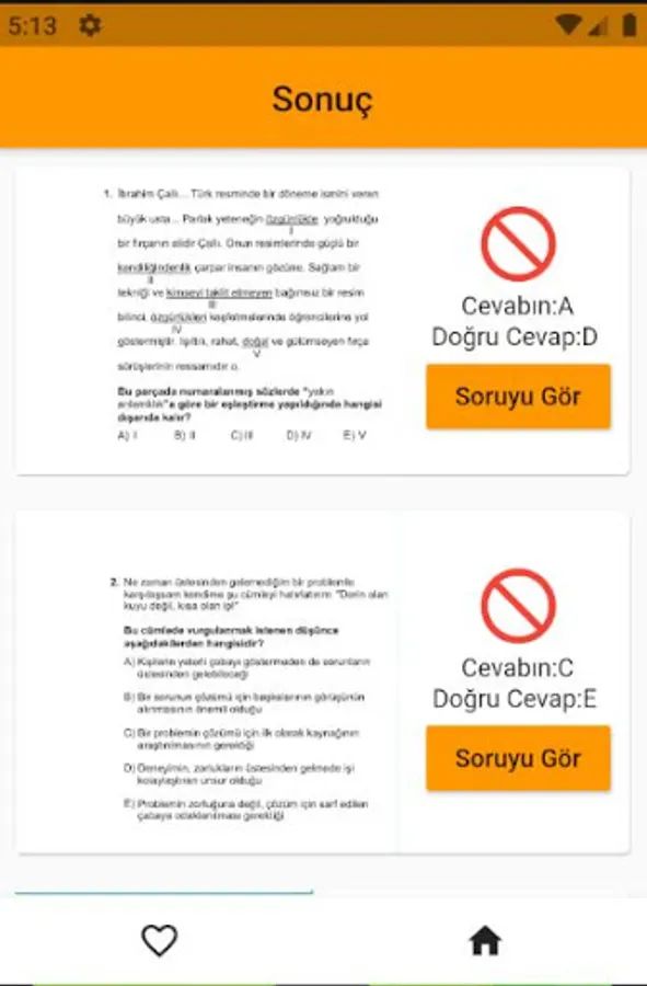 - You can see the answer to the question instantly, or you can see your total mistakes and correctnesses as a result of the test, and examine which questions you answered incorrectly.