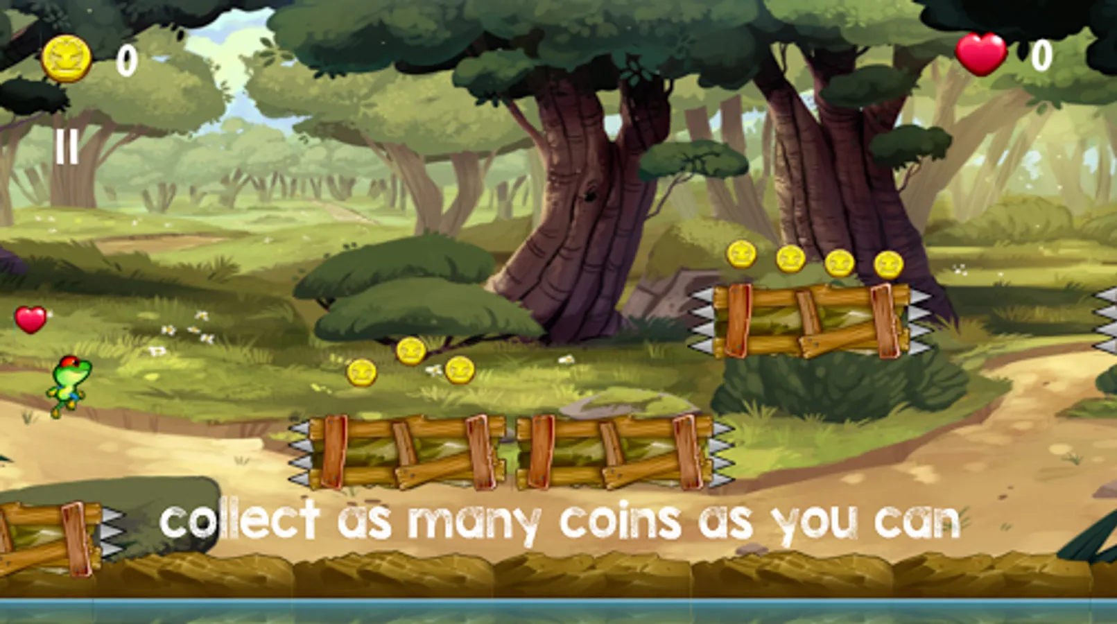 Fredo the frog is an endless Jump ’n’ Run game with the goal to collect as many coins as you can. Furthermore you can collect extras to get bonus points or change the game speed. Different obstacles make it hard to collect coins. Fredo the frog has nice graphics, a simple game principle and is a lot of fun.