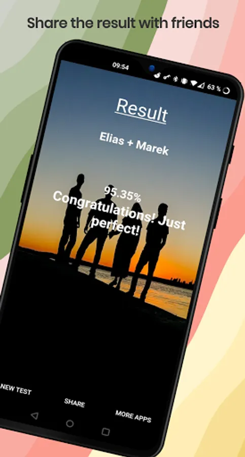You can share the result with any app that supports this function. (e.g. WhatsApp, Email, Bluetooth...) or your bff.