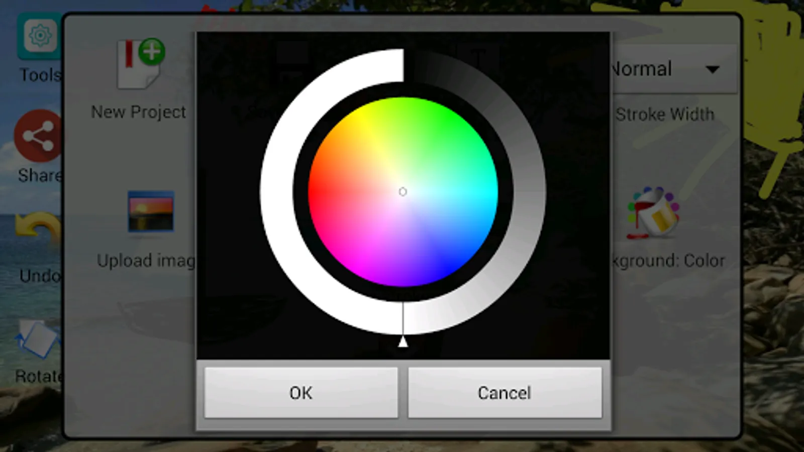 In Mobile Paint you can create your own color creation and use them for your texts, background or stroke.