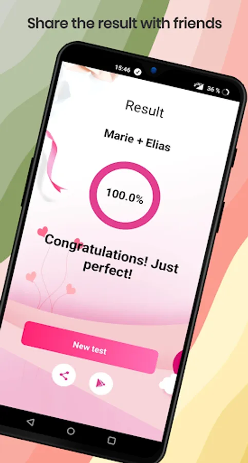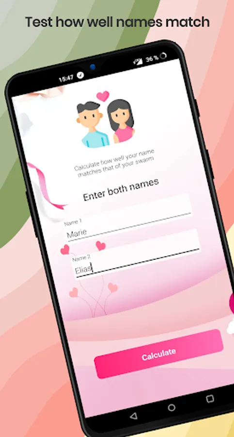 With Name Test you can test how strong 2 names correlate. Just enter 2 names and Name Test will calculate the result. The result of Name Test can be shared with your friends. Use Name Test to as a funny tool to test names of your friends and family.