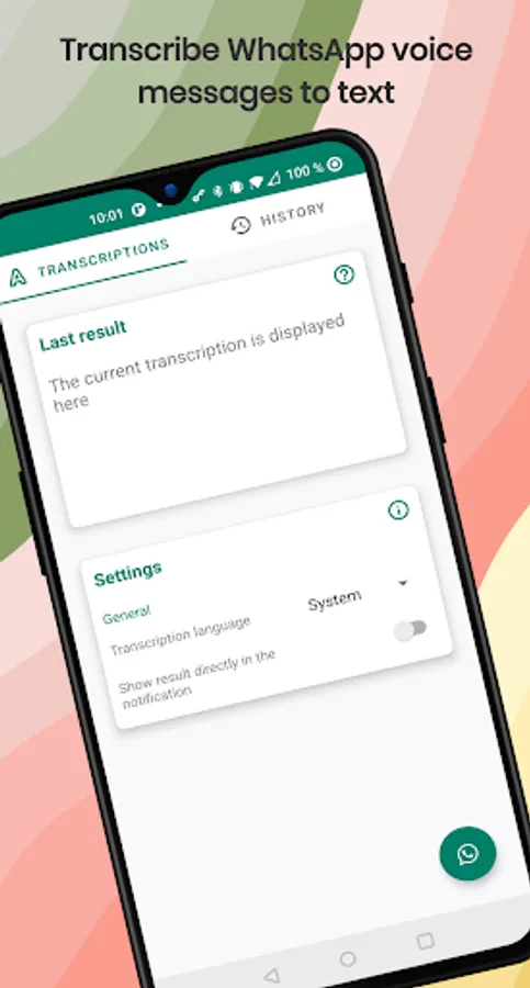 The transcribed text will immediately appear in a notification. You can then share or copy it. All converted WhatsApp voicemails are historized, so you can always see what you have already transcribed.