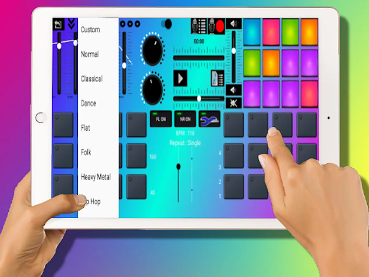 By mixing the music with the pads, you can create amazing improvised rhythms.