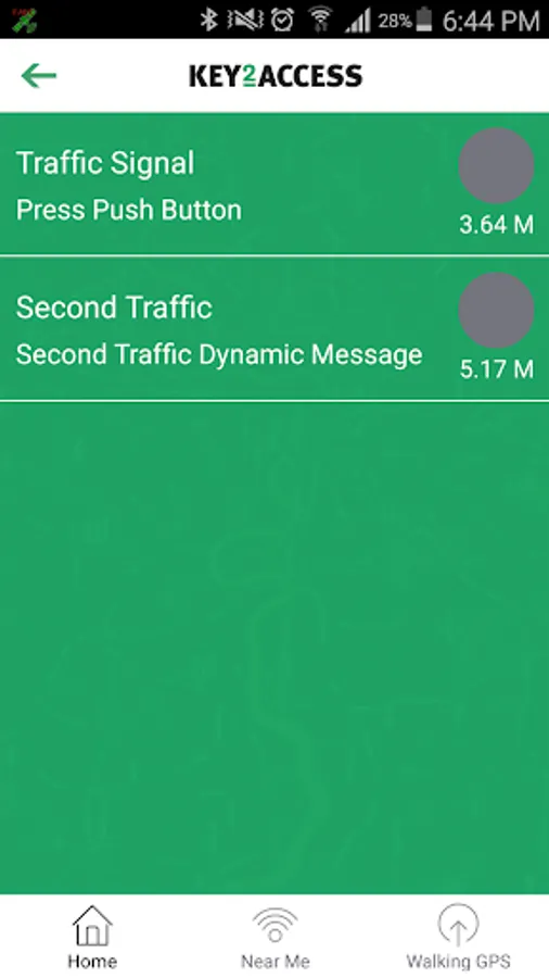 Are you a visually or mobility impaired pedestrian? Key2Access allows you to wirelessly request pedestrian crossing from the convenience of your own cellphone. No more need to struggle to find and reach for the push button; now pedestrians can simply point and click to cue a traffic response. Additionally, users requiring so will be able to receive on demand auditory responses as well as vibration guided alignment.