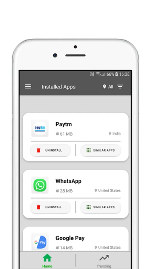 This Application inspects and provides detailed information about all installed apps in one view. The information provided by the Application is on the best effort basis from market research and publicly available resources. The Application also provides suggestions on similar apps based on user preferences. And, additionally, gives information on trending applications matching user preferences.