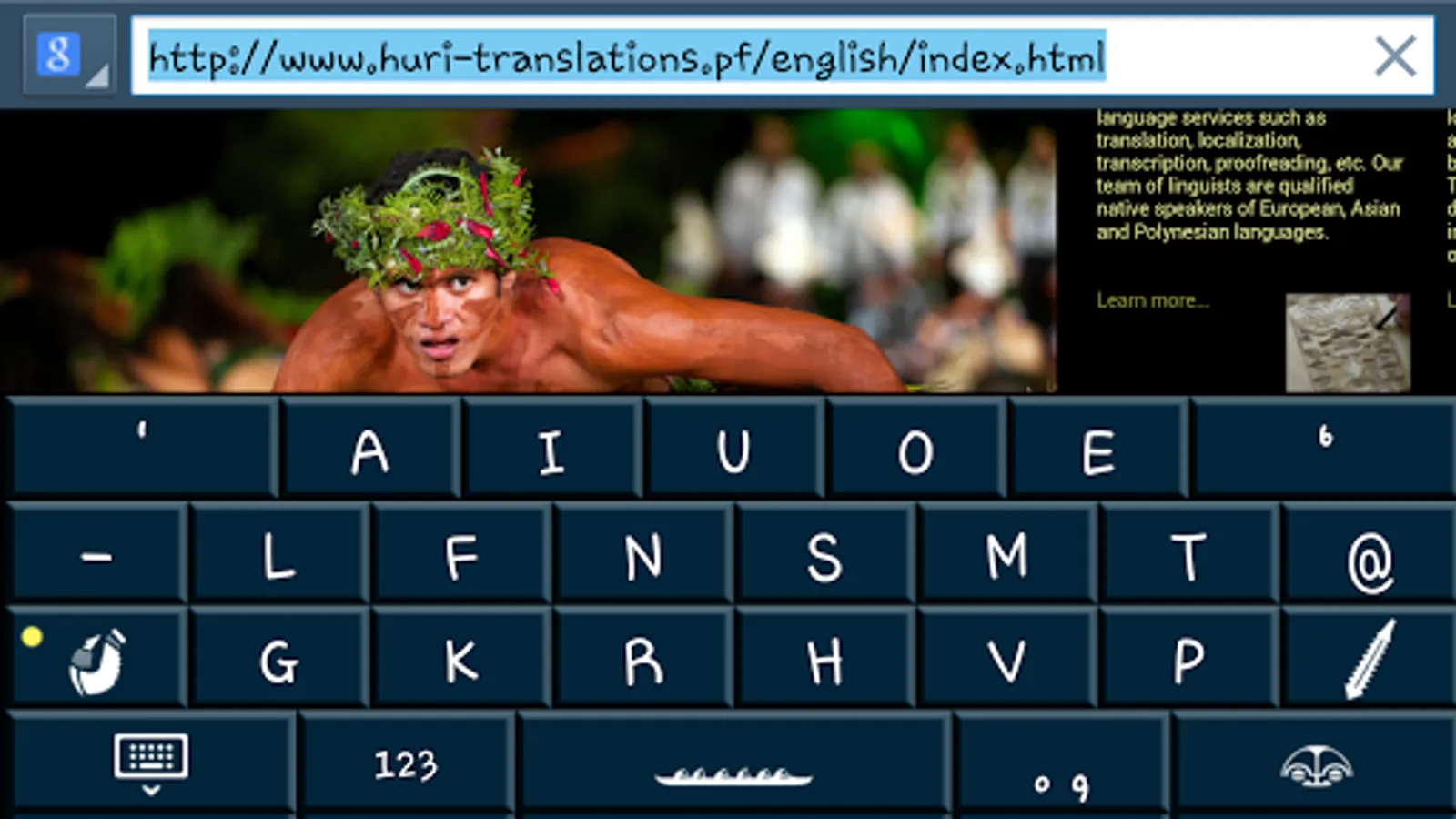 Huri Translations has integrated two apostrophes (used for glottal stops, also called Koma liliu) into the main set of characters of the Polynesian Keyboard so it's just faster and easier to type your text!