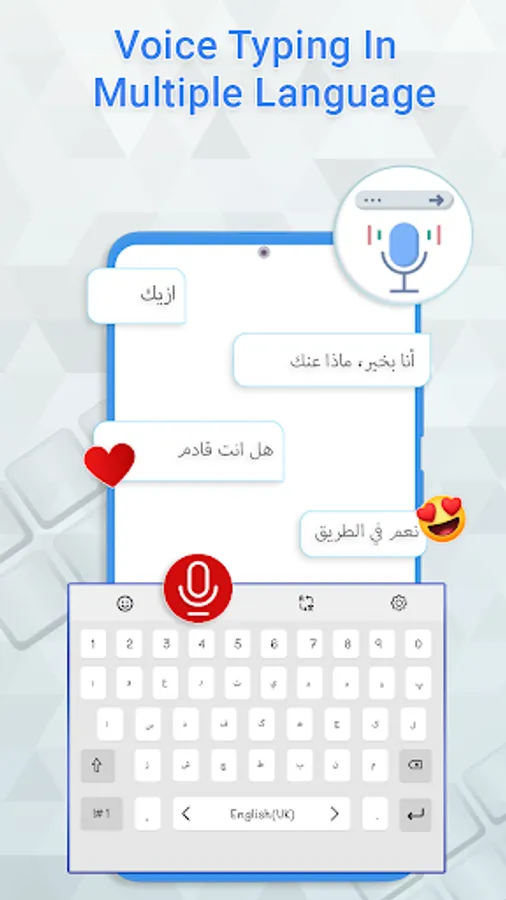 All Language keyboard - Voice typing keyboard is multi language keyboard, now you can type in different languages such as English, Spanish, Hindi & Arabic simultaneously. This all language keyboard is assisted with voice typing you can also type by voice, just speak and get text.