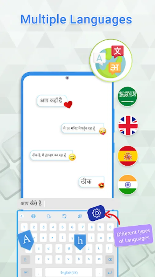 ➡️ English, Hindi, Spanish & Arabic keyboard in one app