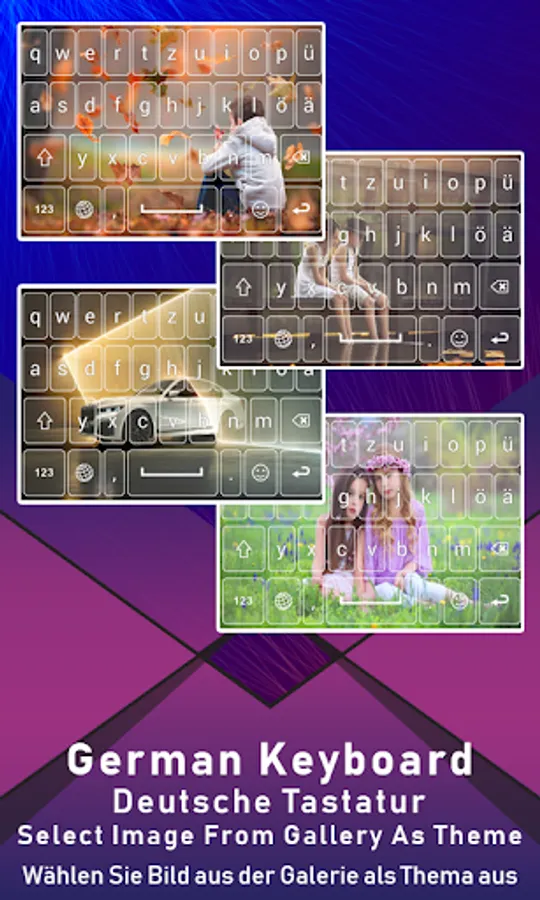 Multi language keyboard is now available search store. We have the greatest design of gradient themes for you to change keyboard. I would recommend to all keyboard users to change your keyboard layout with German English keyboard. Multiple keyboard with fast typing keyboard for multi keyboards. If you are feeling bored from your mobile default keyboard then use German keyboard with custom themes, custom colors, emojis, sticker.