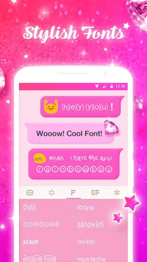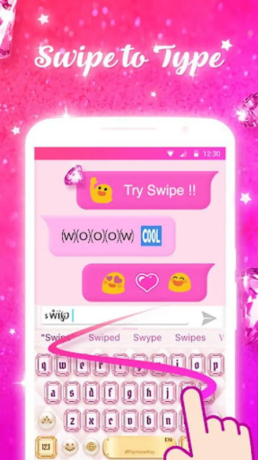 🌸Diamond Keyboard Theme – the latest keyboard theme for RainbowKey , which Featured TOP 5 INNOVATIVE KEYBOARDS through the past 3 months. It is designed for girls who have a good taste of fashion on keyboard, fans for all communication media and the coolest girls who want to be the trend leader!