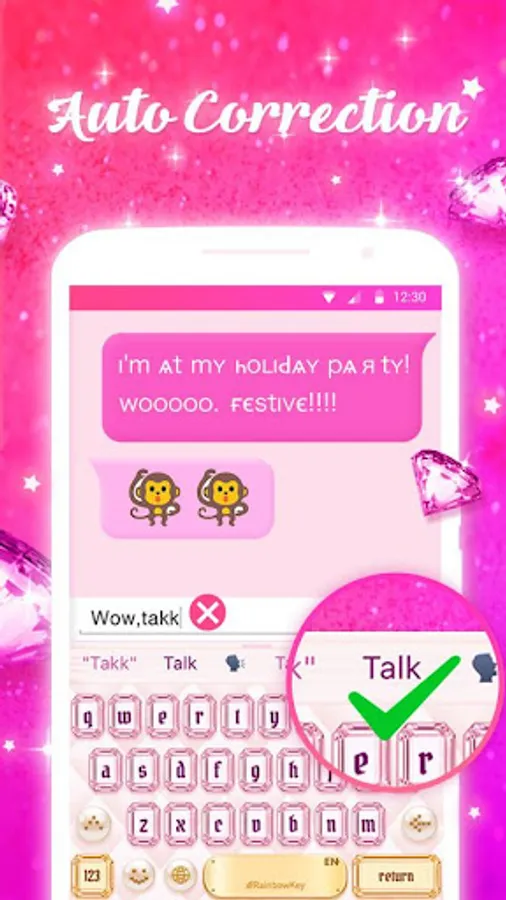 This pink glitter diamond theme belongs to the latest version of RainbowKey. And you can get many other beautiful keyboard theme from there!