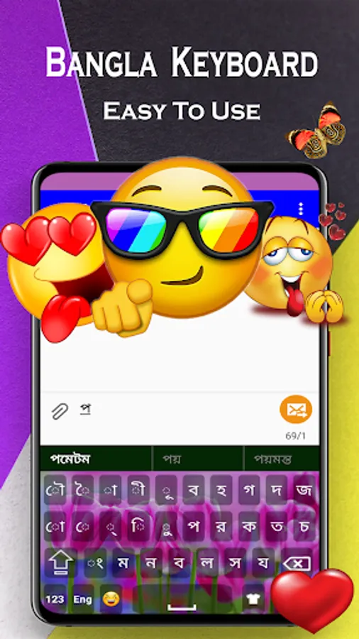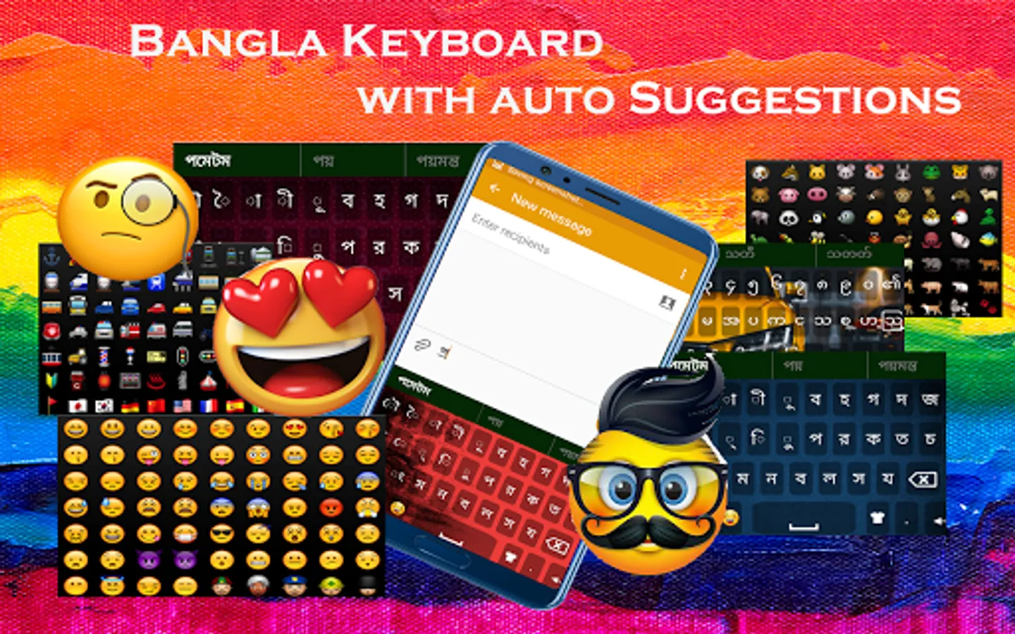 Bangla keypad app offers a huge and cool collection of New Emojis and Bangla suggestion. Now simple Bangladeshi keyboard chatting gives cute cool emojis in the Bangla Unicode keyboard. Bangla Typing Keyboard is a free English Bangla dictionary app. Change the vibration and sound of accurate Bangla typing keys. Free English Bangla Keyboard is a one-handed keyboard with Bangla smart setting options.