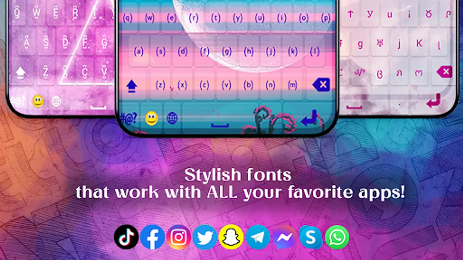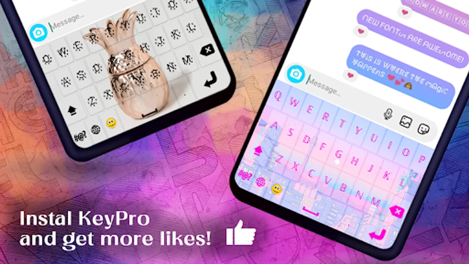 💜 Personalize your keyboard with KeyPro! Discover the “font keyboard free” with keyboard themes and cool fonts for instagram and all social media apps! Free download KeyPro Keyboard Themes & Fonts and change the way you type! We bring you the best “free themes” with fonts symbols and emoji stickers! The only “cute keyboard” app you need is finally here, all ready to take typing to a new level! Experience fun free keyboard fonts with emojis, fancy keyboard symbols, change key sounds and styles! The coolest diy keyboard lets you choose amazing text fonts and you will discover the “kawaii keyboard”, pastel keyboard, font art and more! Custom fonts and free app themes to glam up your phone! DOWNLOAD NOW FOR FREE 🌸