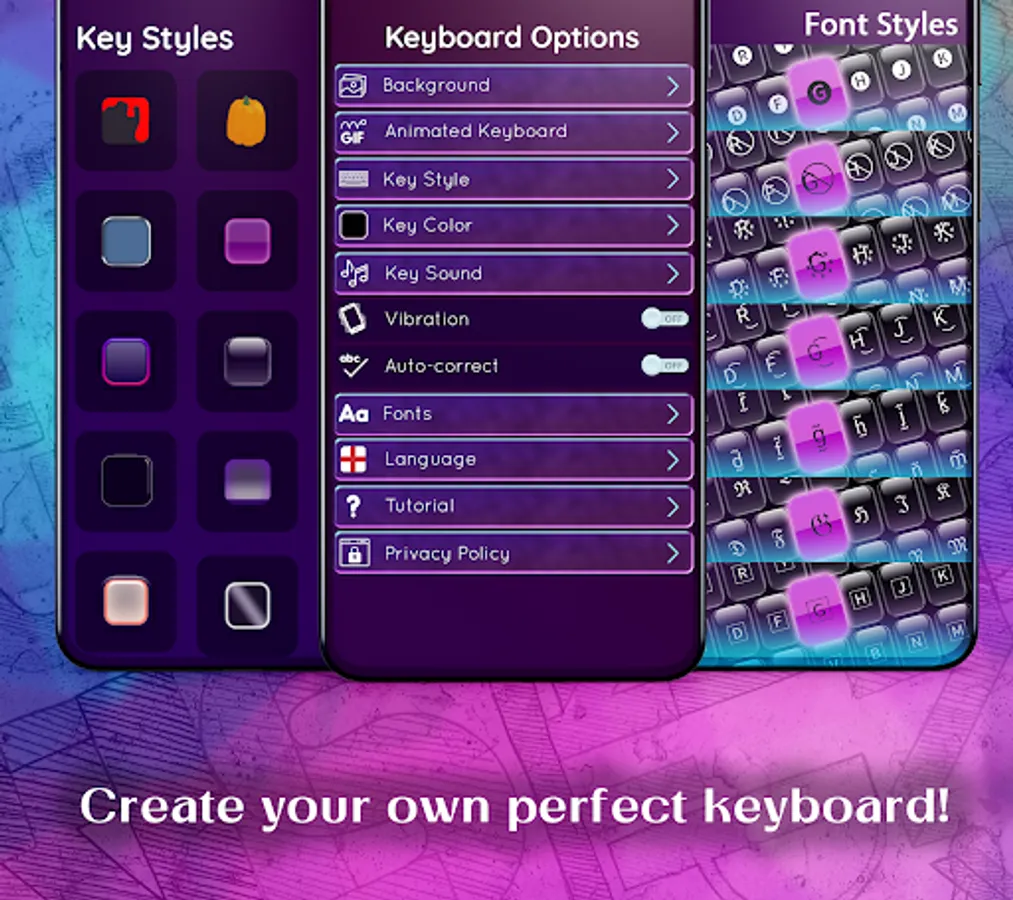 💜 Discover all powerful KeyPro features and get a free, fully customized keyboard diy for your phone! Spice up all your chats and DIY keyboard – customize colors, free fonts and cute backgrounds! Use a design keyboard to send fun letter fonts to amaze your friends – use them for all messaging apps! Decorate your mobile with one of the best girly apps to customize your phone! You can type love text messages and share sweet keyboard emojis all day long! Follow the latest social media trends and FREE DOWNLOAD KeyPro Keyboard Themes & Fonts! Send cute emoticons using cool keyboards! If you are looking for girly apps for phones, your search is over! This emoji keypad brings you an array of girly themes and keyboard fonts free! A perfect match for your dearest aesthetic wallpaper! The most popular keyboard customizer will beautify your phone like never before – try it out now! FREE DOWNLOAD 🌸