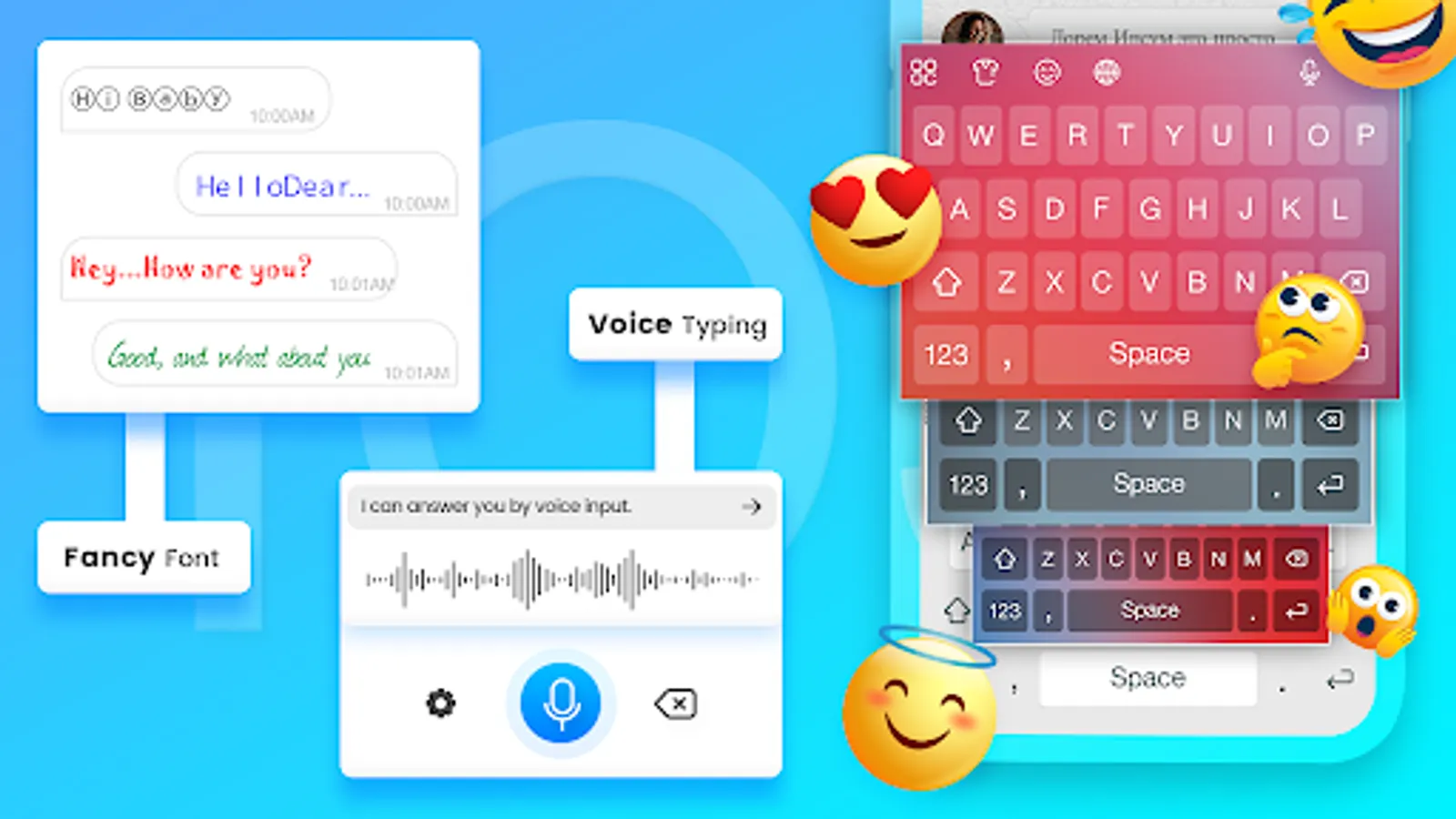 A free, configurable keyboard app for your Android smart phone is called "keyboard for phone," "keyboard for phone 15 pro," or "swipe keyboard for iphone." The creative fonts, 5000+ emoji, emoji artworks, emoticons, personalised themes, auto-correct input, gesture typing, smart and fast reply, type less speak more, speck to write, and word predictions features of this top keyboard software are just a few of its features.