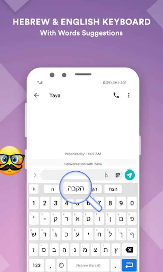 Hebrew keyboards for android are designed for you with beautiful themes that allow you to type in the Hebrew language. Hebrew keyboard for Samsung with English is a multi-language keyboard like English to Hebrew and Hebrew to English to write Hebrew with advanced features. Hebrew keyboard has advanced features like Hebrew Fonts to select favorite text style on keyboard buttons while chatting with friends. Hebrew keyboard has a dictionary option to save your favorite word that is mostly used while typing on the Hebrew keyboard. Hebrew keyboard typing easily has cute emojis, stylish stickers to make the native Hebrew language. Hebrew keypad typing keyboard is all language keyboard in search store.
