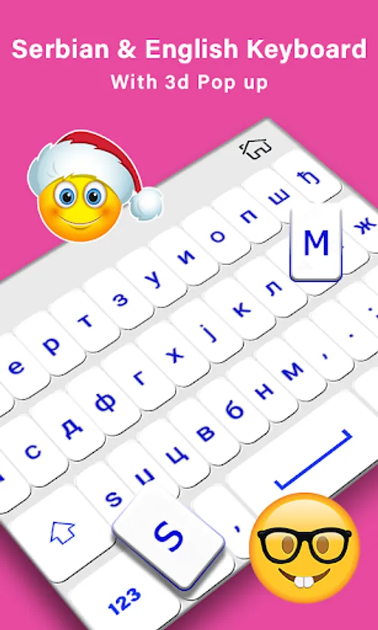 Serbian keyboard has 2000 emoji icons, cute emoticons, stylish stickers symbols.