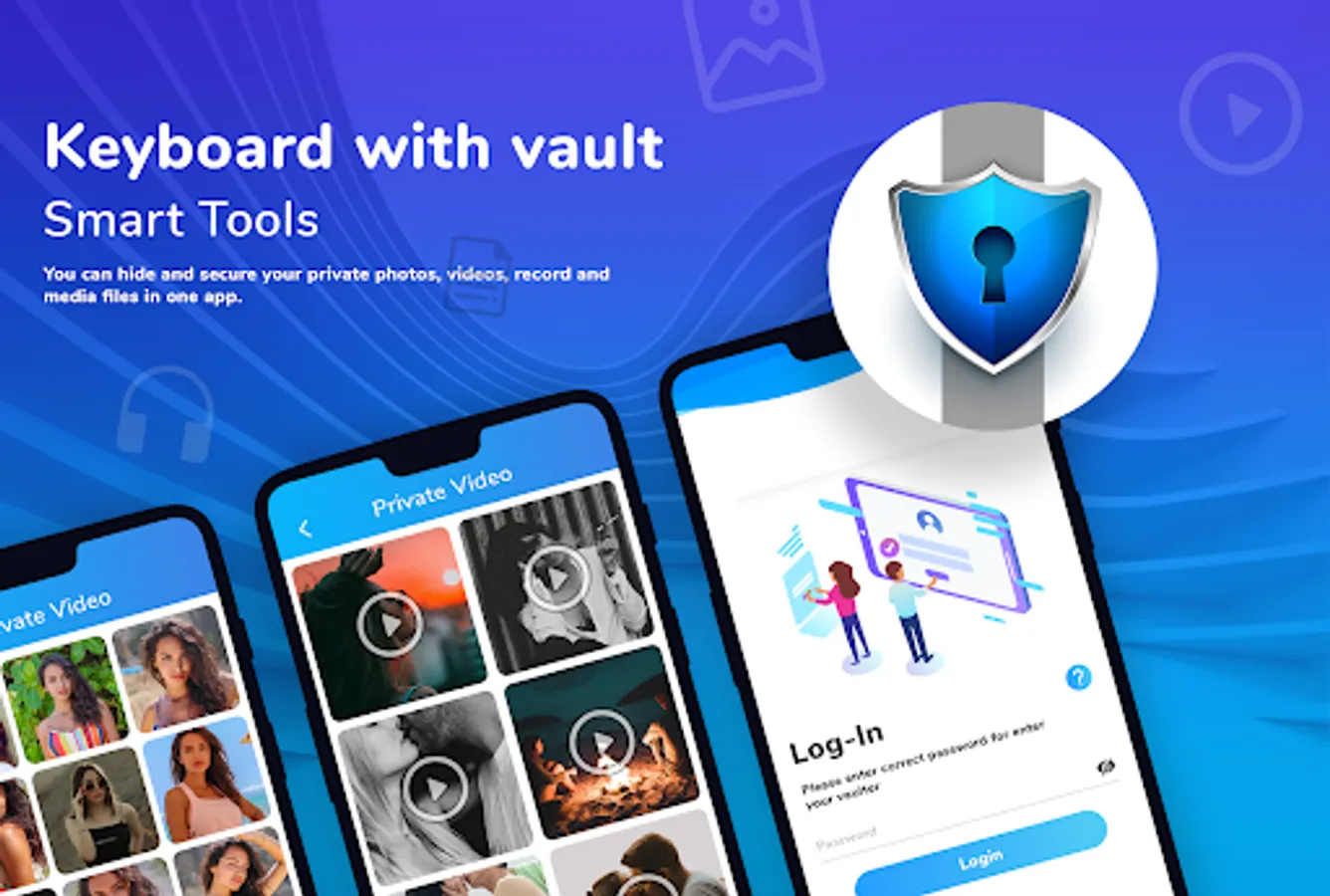 Photo video vault App for protecting your privacy by keep it safe behind the Photo Keyboard! Keyboard vault (Hide Pictures & Videos) is an upgraded photo and video locking app for Android. Protect your personal photos, videos and more without any hassle!