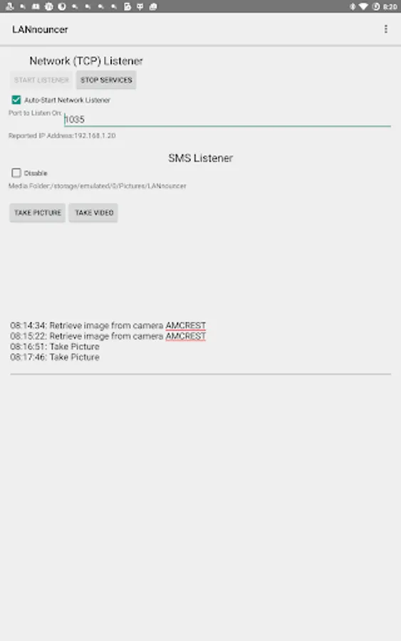 LANnouncer runs in the background, listening on LAN (local), SMS or GCM (Google Cloud Messaging) to announce events from your home automation system. LANnouncer supports TTS (text-to-speech), so that events can be fully spoken, plus a few basic alarms, strobes and text notifications. It can also take photos or prepare them from local IP cameras.