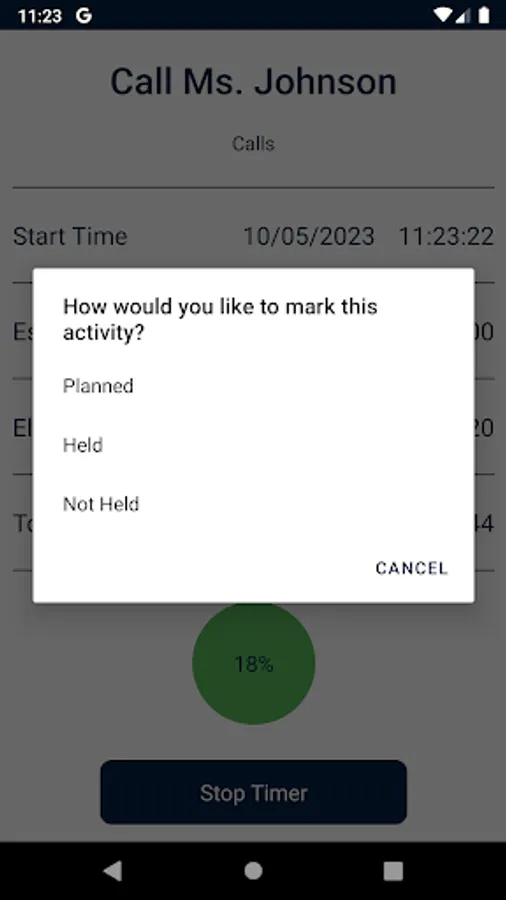 The status, progress percentage, and working time of your activities is kept up-to-date automatically.