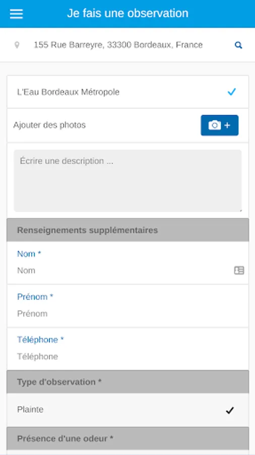 The application L'Observatoire des Odeurs was designed for any user who observes an olfactory perception near wastewater collection or treatment facilities and wishes to trace it in real time and follow its resolution.