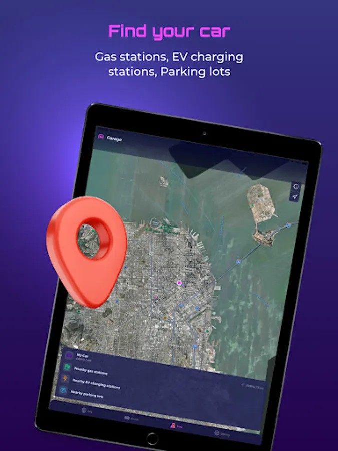 + SMART NAVIGATION to remotely locate your car or find fastest routes to car parks or gas / EV charging stations on maps.