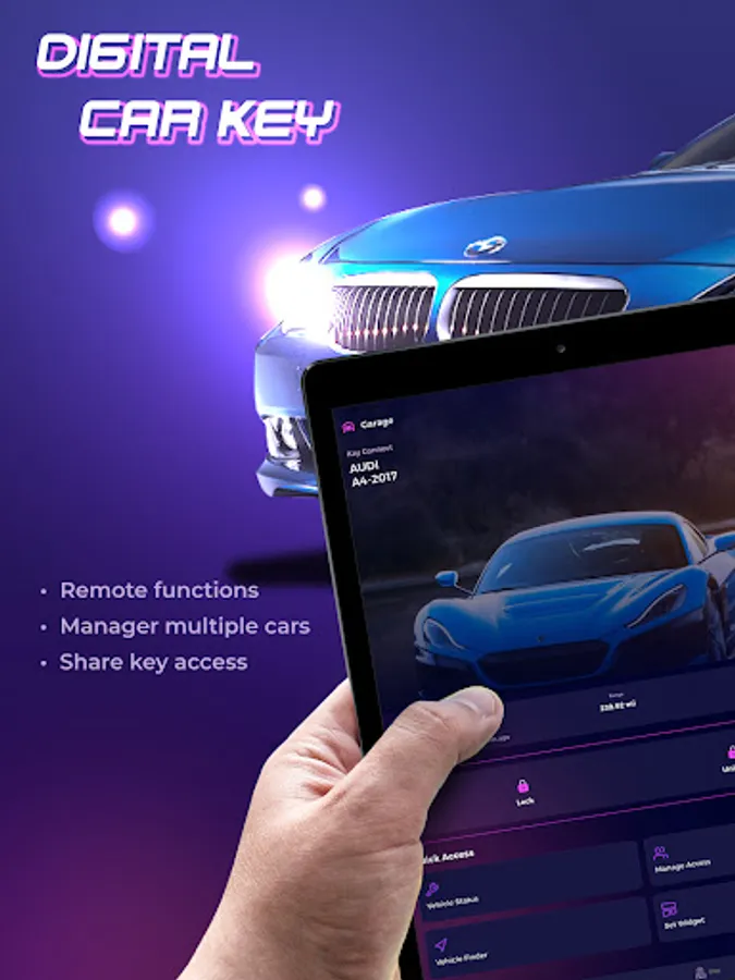 + Share car key securely with BANK-GRADE SECURITY protocol. Share car key digitally with car renters without physical key exchange or with other family members in need.