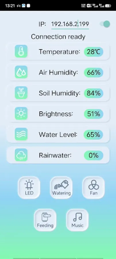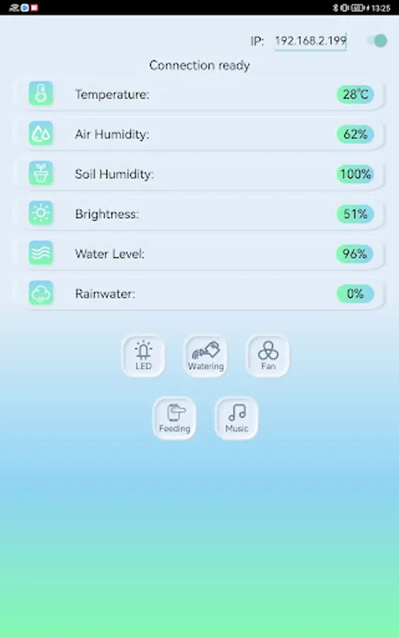 Keyes Smart Farm can use the app to view real-time data such as humidity and temperature on the farm, as well as control the equipment switches on the farm.