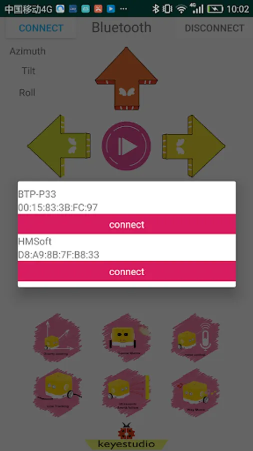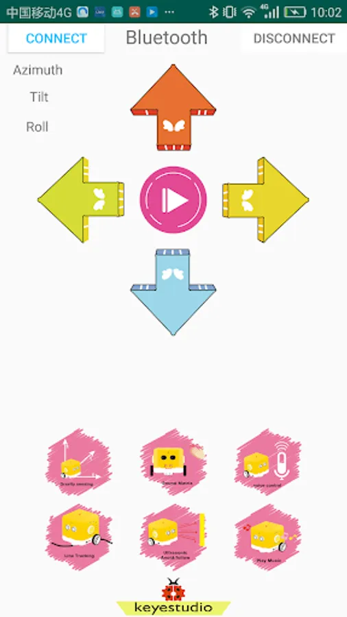 This is a bluetooth 4.0APP used to connect with bluetooth hm-10. The interface mainly controls a bluetooth smart Car named Coding Robot