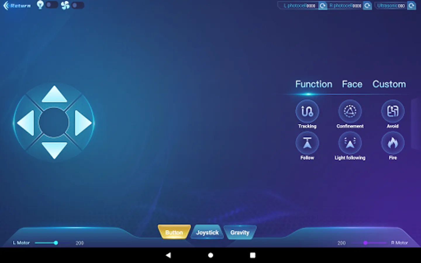 This is an APP connected to low-power Bluetooth HM-10. The interface is mainly aimed at the company's products, controlling various movements of the smart car and receiving data detected by sensors.