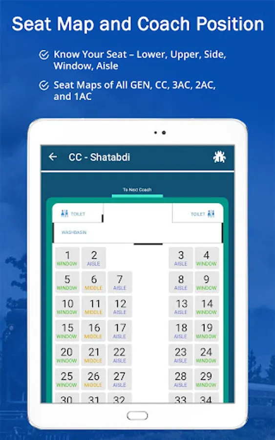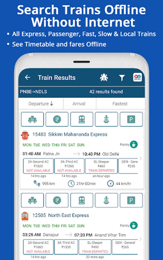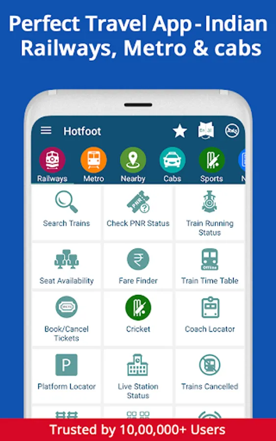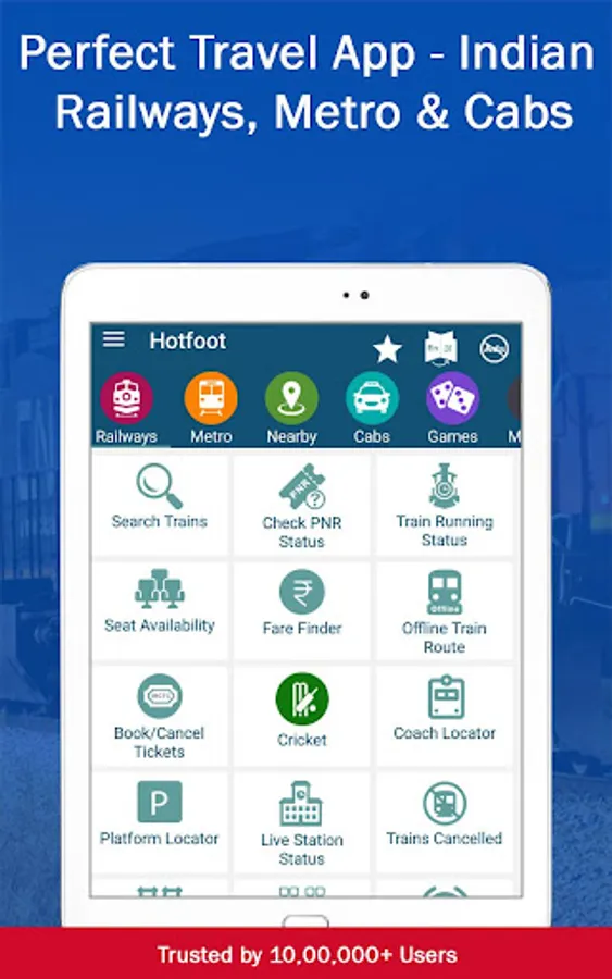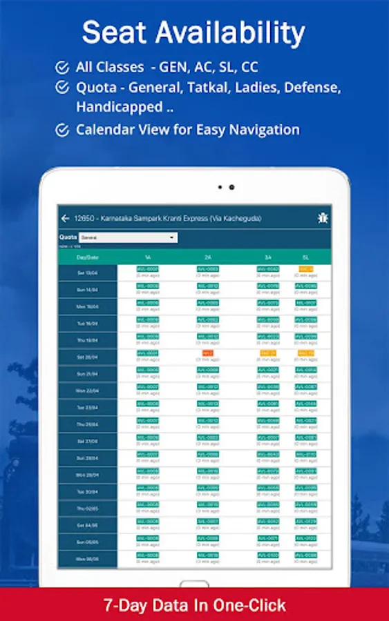 Hotfoot app lets you check train seat availability for any class in an easy-to-use calendar layout. Just tap on the calendar to see the availability of train seats. It includes train seat availability for all popular trains and other 7000 trains.