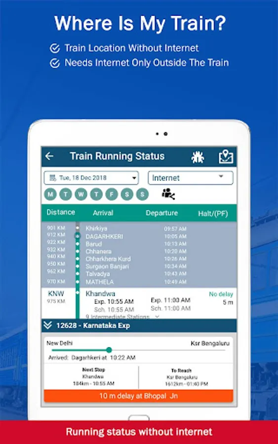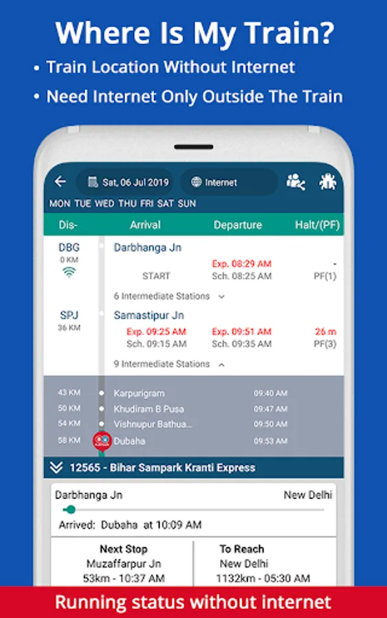 Get Live Status of Train anytime, anywhere. This works on GPS and does not require Internet within our app. Please try it from "Train Running Status" feature of our app.