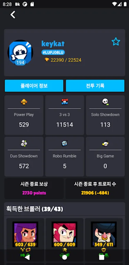 You can perform a total search by searching for a player tag in the Brawl Stars game. You can view a variety of information, from basic information such as the player's trophies, account level, account name and tag, and information about the player's broiler, to the player's battle statistics and battle history. You can also save your own account from the main screen.