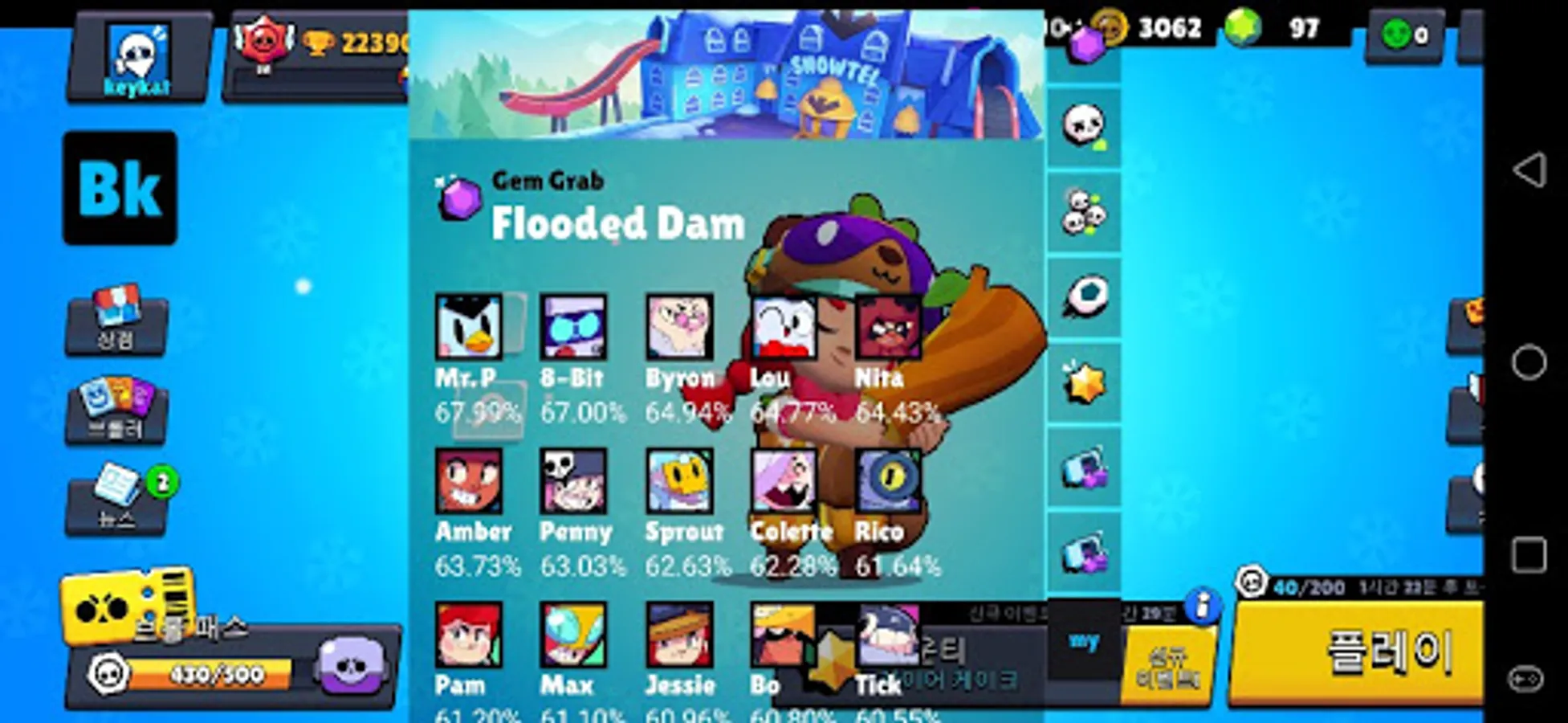 Also, if you touch the blue button on the main screen, you will see the brawler's win rate for each map. Use the odds stats to choose which broiler to play.