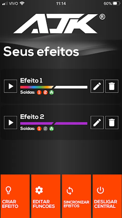 App to control AJK's CENTRAL STROBO DIGITAL BLUETOOTH. The panel has two independent outputs for digital LEDs, being able to create thousands of combinations of effects and colors in a quick, easy and intuitive way. It has several features such as automatic effects change mode, effects memory, voltmeter, customizable security password, operation connected to the smartphone or independently, in addition to many other features. The ideal product for various applications with 12 volt power.