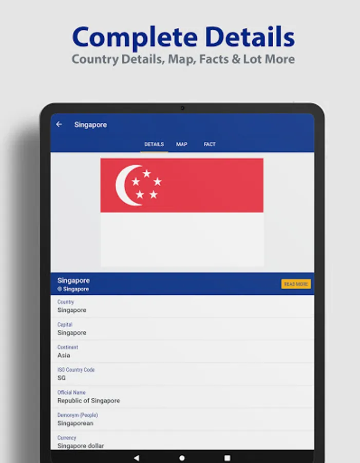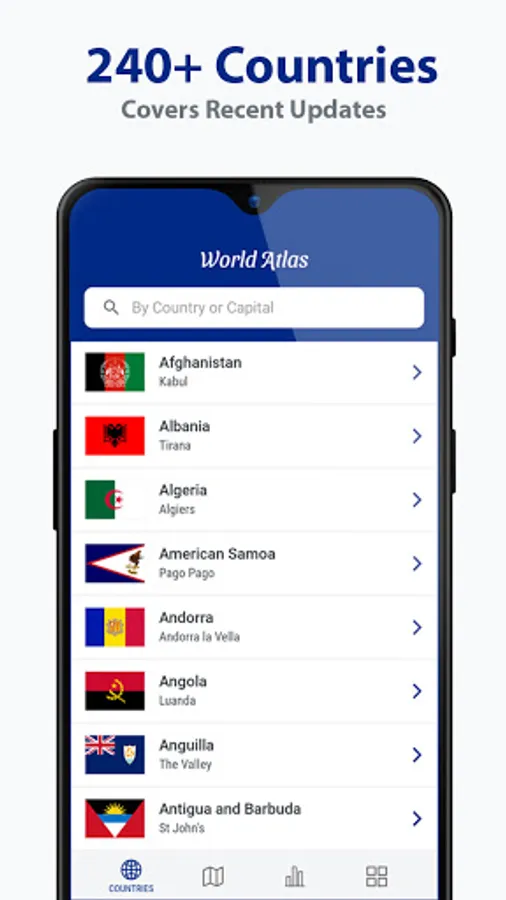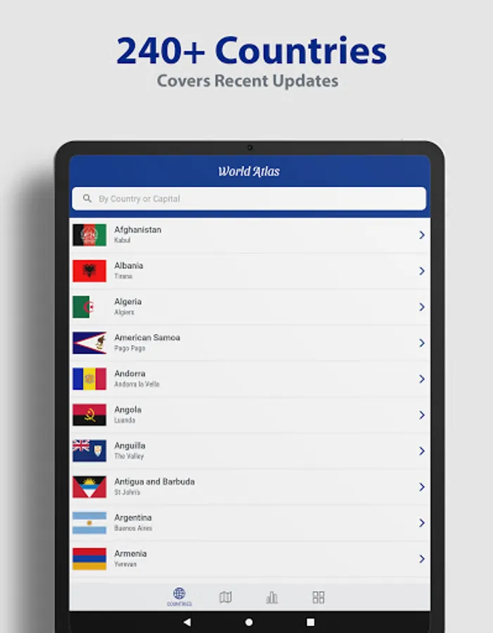 Expand your knowledge - with over 200 countries and 200 capitals, this is the most complete atlas app on the market.