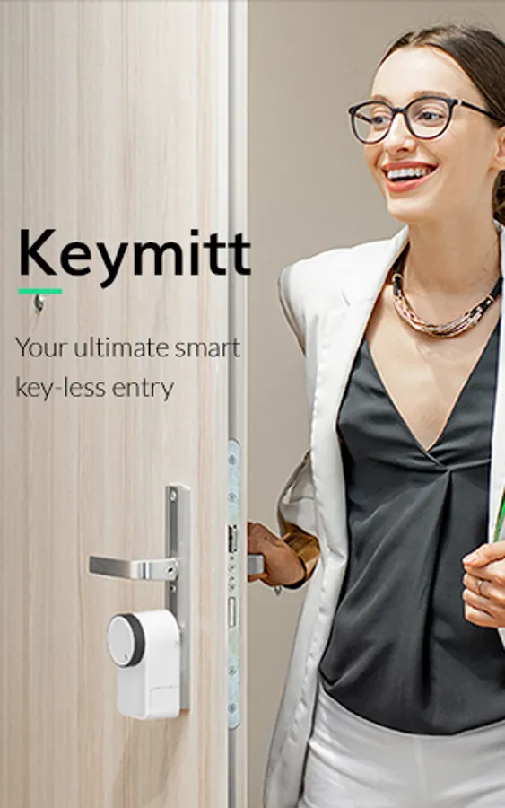 The Keymitt key-less access system is suitable for households, apartments, and even for businesses. Use your smartphone instead of the old keys and control your door lock remotely even if you are away from home 24/7.