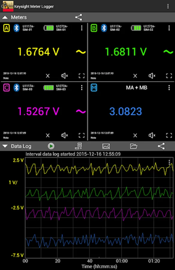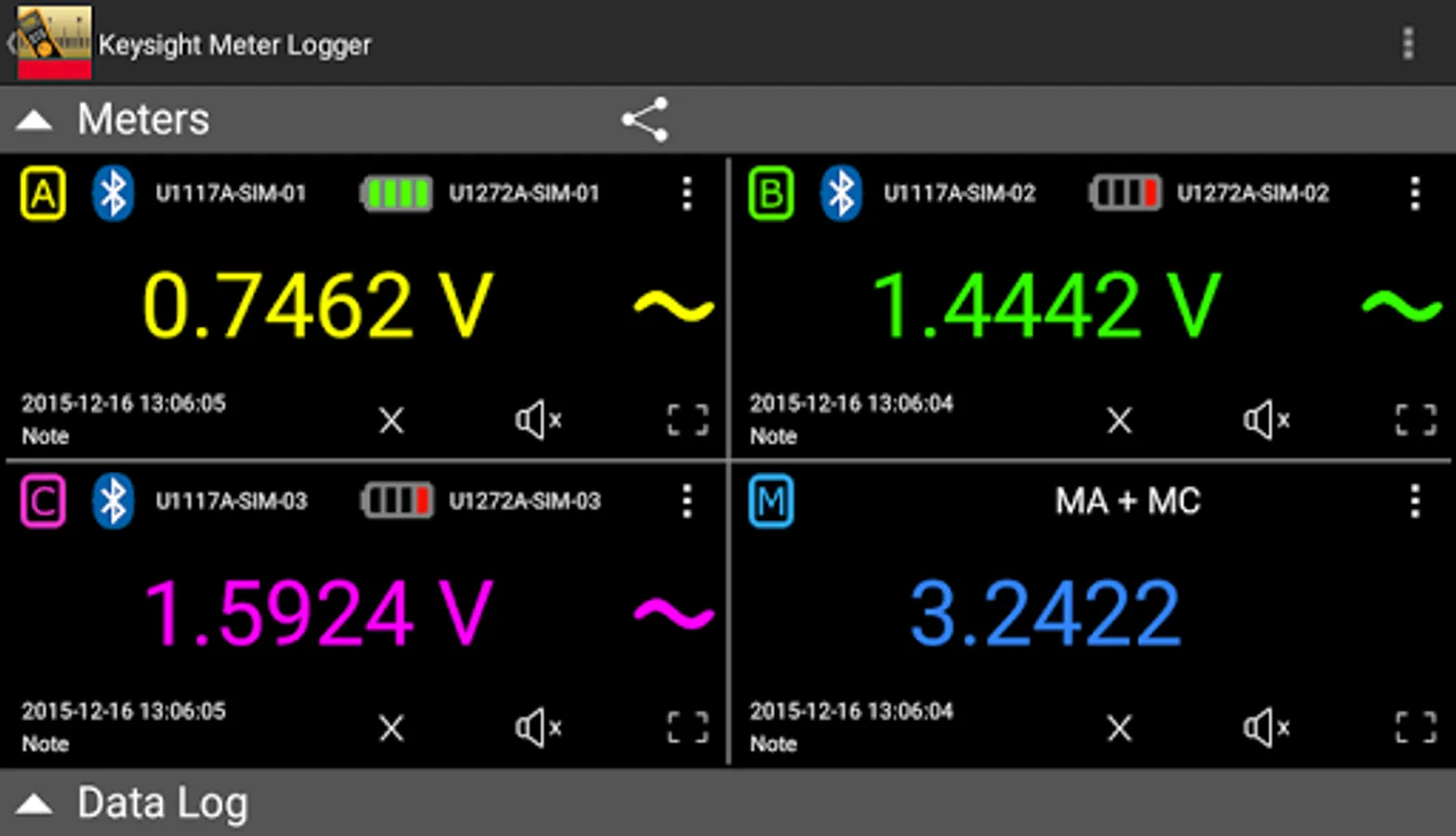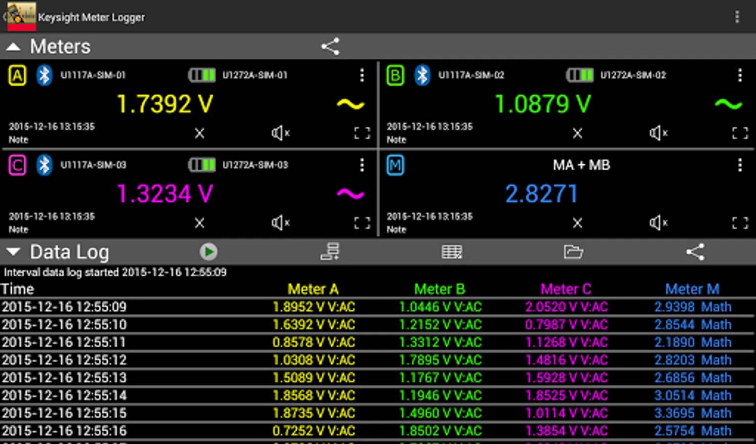Keysight Meter Logger for Android smartphone and tablet improves your productivity and safety by allowing you to stream measurements in real time from up to 3 Keysight handheld digital multimeters and clamp meters wirelessly: