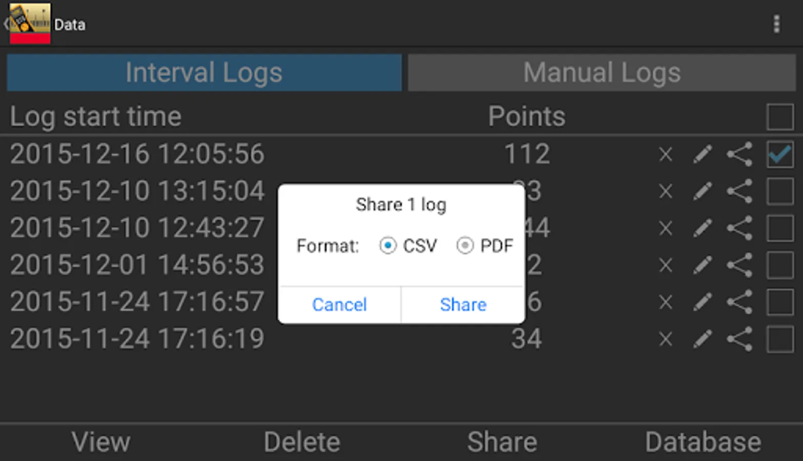 - Share recorded data in .csv and .pdf format via multiple platforms (Email, Dropbox, etc.)