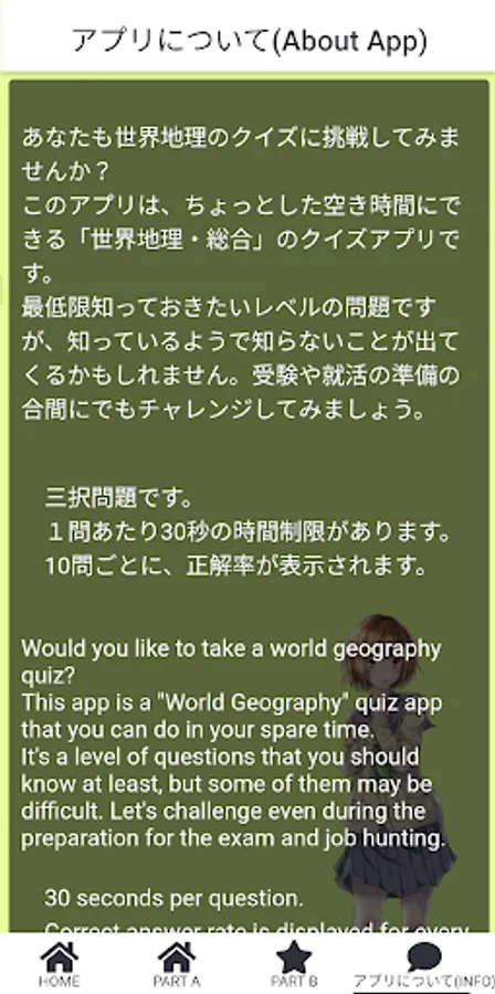 This app is a "World Geography / Comprehensive" quiz app that you can do in your spare time.