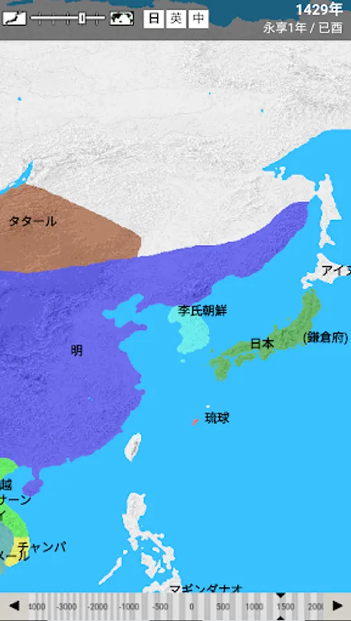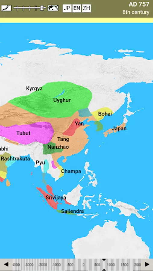 (1) Specify the era by tapping the scale at the bottom, tapping the arrows on the left and right of the bottom, or tapping the year in the upper right and entering a number. It can be specified in 1 year increments.