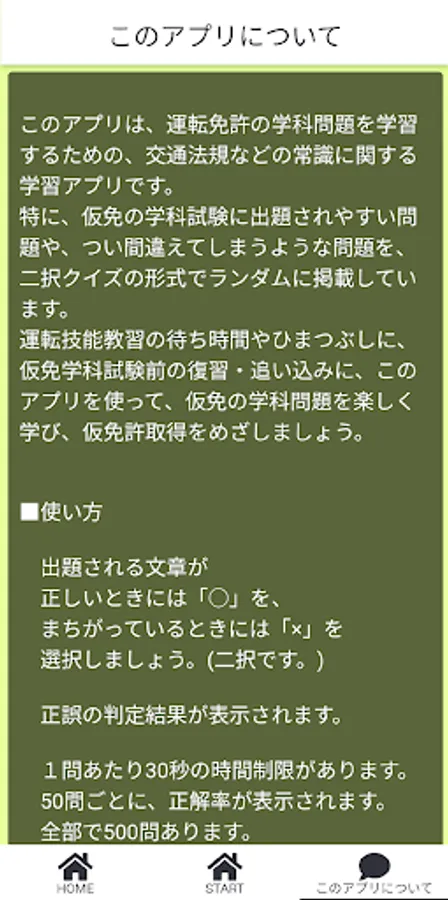 Let's use this app to learn the academic problems of the provisional license in a fun way and aim to obtain a provisional license.