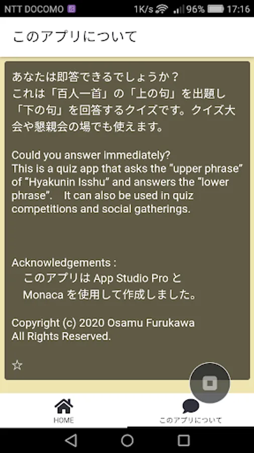This app is a quiz app of "Hyakunin Isshu" that can be done in a little free time.