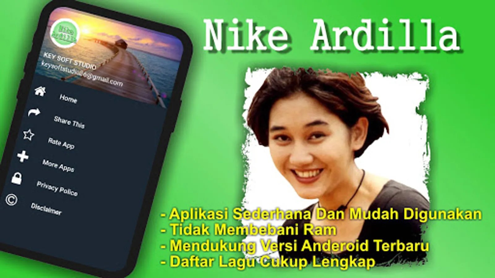 This music player application contains complete Nike Ardila memorable songs, for those of you who like Nike Ardila songs, you can download this application