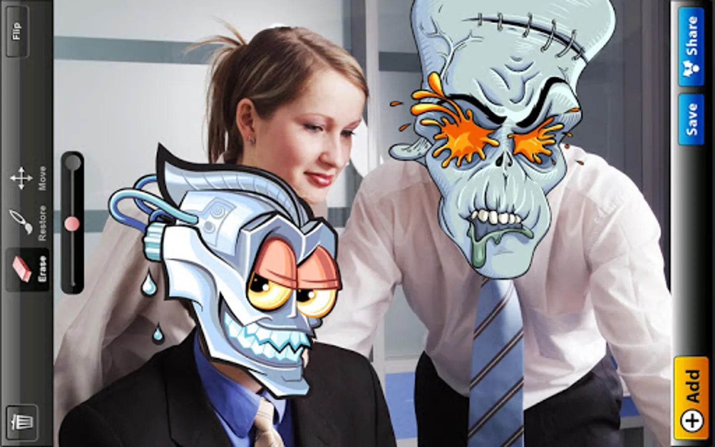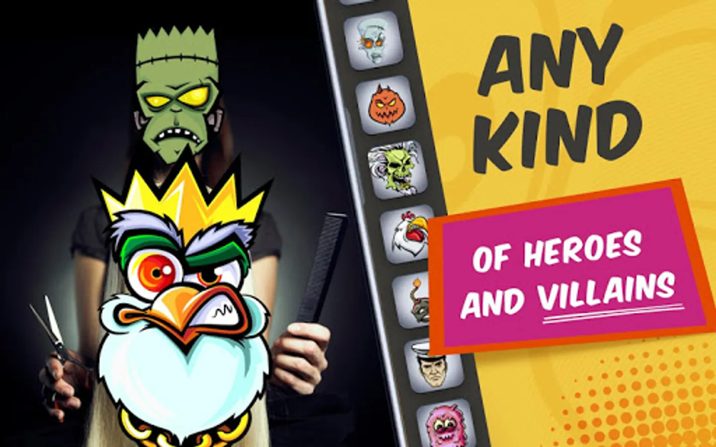Comics Mask Pro offers lots of comic stickers to replace faces on your photos. Create hilarious comic heroes out of your friends and family!