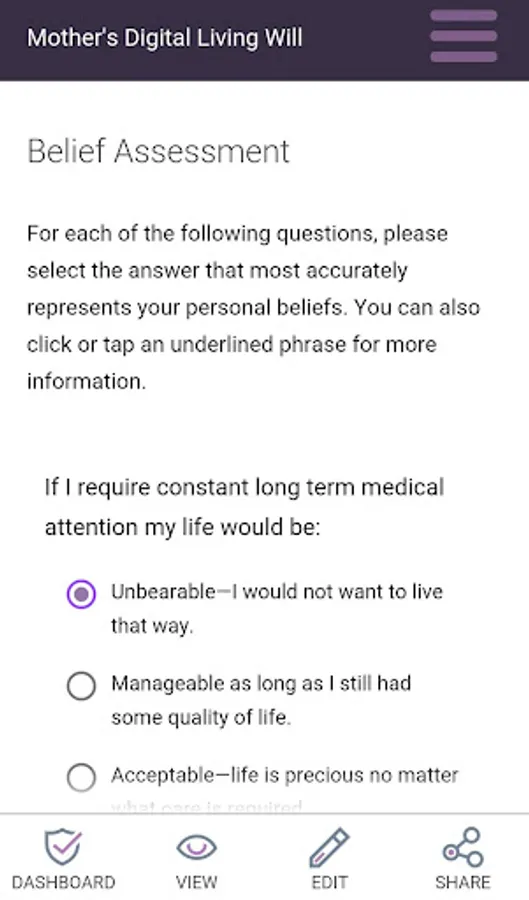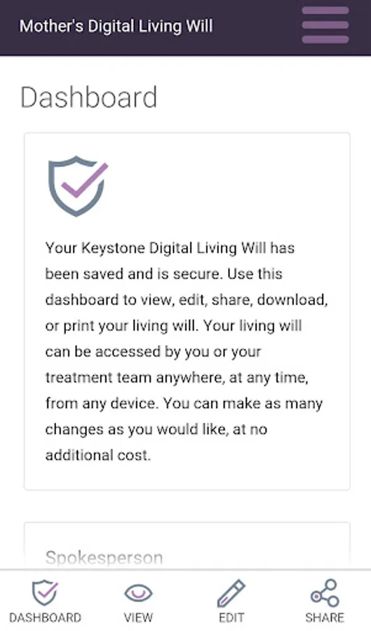 Create and update a fully digital legal living will that can be viewed by family members and medical professionals anywhere, anytime. Make end-of-life healthcare choices clear and accessible in case you become physically or mentally unable to communicate or make those medical decisions.