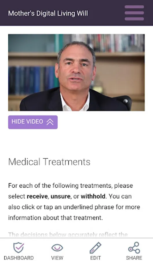 • Video instructions from a doctor – leading physician and ethicist