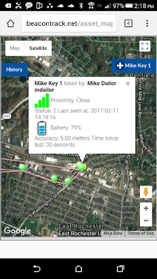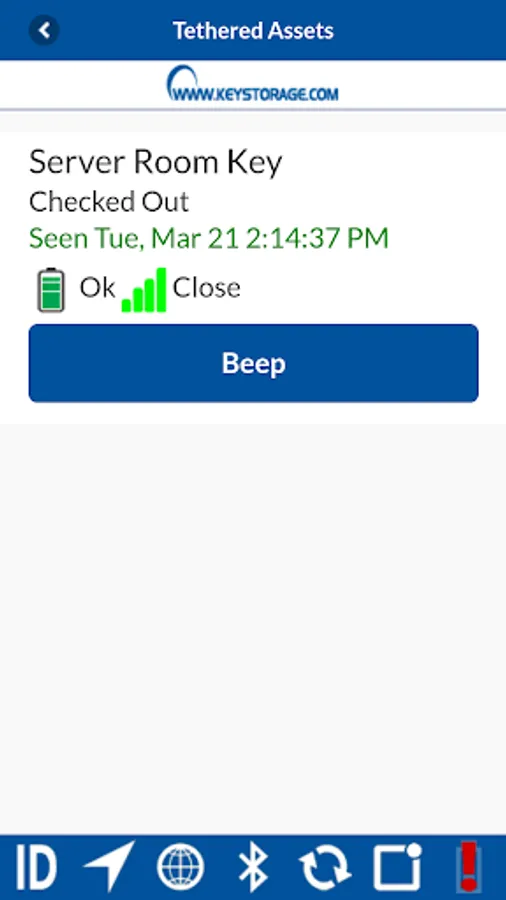 Asset Tracker works with your Key Systems Global Facilities Management System (GFMS) software and hardware to track the location of your assets. When an asset attached to a tracking fob is removed from a Secure Asset Manager (SAM) cabinet, an alert is sent to your mobile device. The mobile device connects to the fob via Bluetooth LE and then uses its GPS hardware to track the location of the asset. Tracking continues in the background, even when your mobile device's screen is off or not in use, until the asset is returned to the SAM.