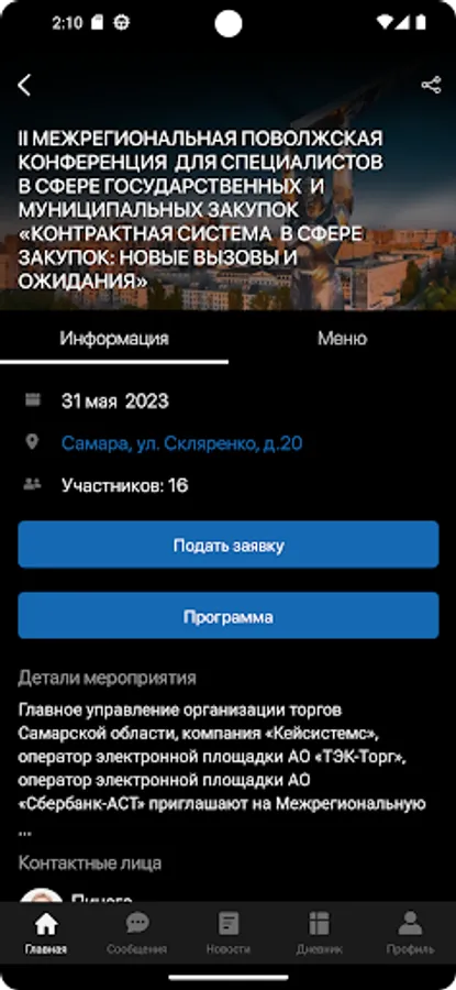 • questions to the organizers and speakers, the ability to make appointments and sign up for individual consultations;